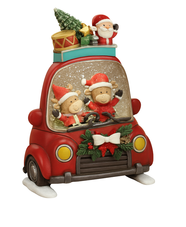 10.6"H B/O Lighted Spinning Water Globe Truck w/ Holiday Highland Cows