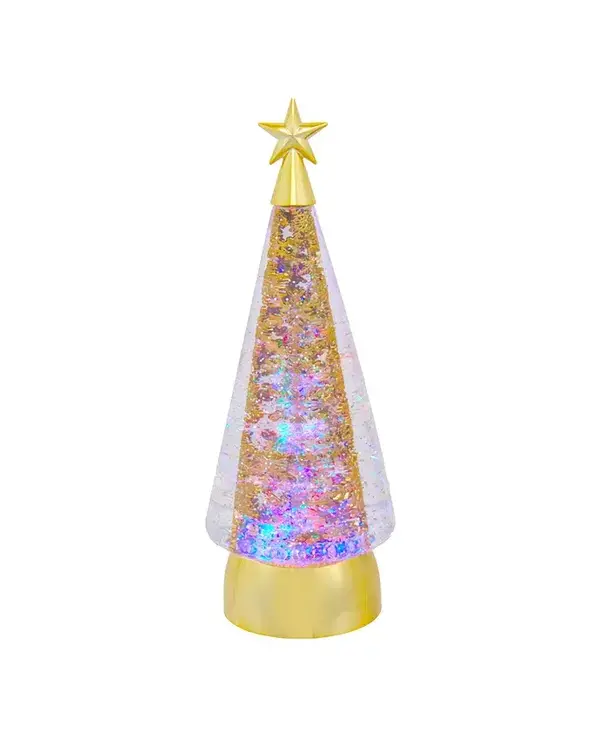 Add a mesmerizing touch to your holiday décor with this 11.5" Battery-Operated USB LED Rotating Christmas Tree. This captivating ornament features a clear Christmas tree filled with glittering water that swirls and spins while the tree slowly rotates. Illuminated by 1 RGB color changing LED light, the shimmering glitter reflects beautifully, creating a magical, snow-like effect. Powered by batteries or USB, it offers convenient placement anywhere in your home.