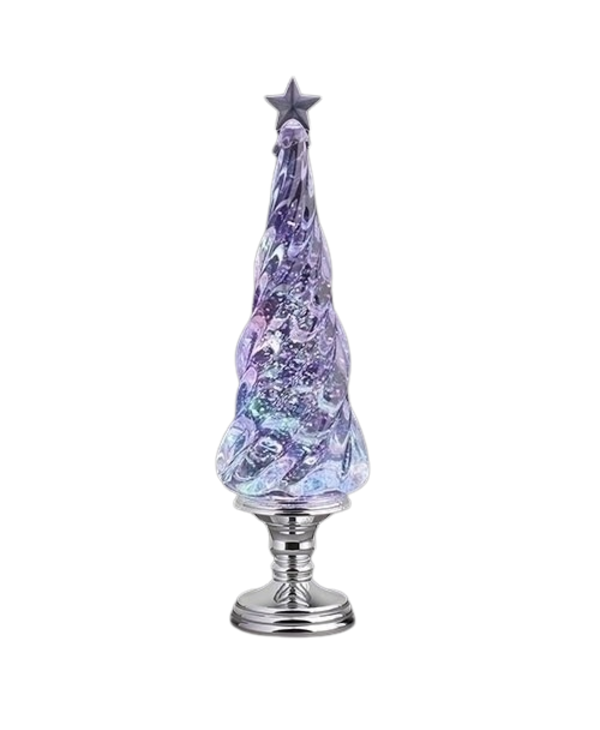 17"H LIGHTED SWIRL TWIST TREE SILVER PEDESTAL