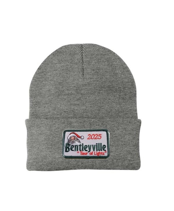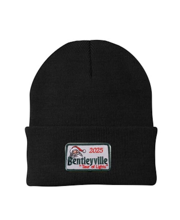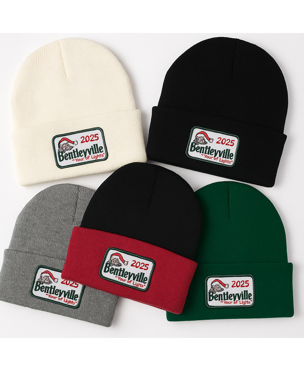 Celebrate the magic of the season with this retro-inspired Bentleyville 2025 beanie! Featuring a throwback patch design with Santa and bold Bentleyville embroidery, this cozy knit hat blends festive flair with everyday wearability. Available in a variety of classic colors, it’s the perfect way to stay warm while showing your love for the Tour of Lights. Whether you’re strolling through the displays, shopping downtown, or gifting holiday cheer, this hat makes a timeless addition to your winter wardrobe.