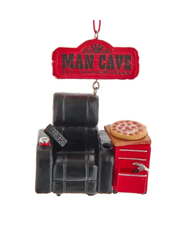 A fun and whimsical decorative piece that pays tribute to the concept of the "man cave." It features a miniature chair designed to resemble a comfortable and inviting seat that one might find in a dedicated man cave or personal retreat space. These ornaments are crafted with attention to detail, capturing the essence of a cozy and personalized relaxation spot. This ornament is a lighthearted addition to your holiday decor, making it perfect for individuals who have a dedicated space in their home for relaxation and leisure activities. It embodies the spirit of personalization and the joy of having a space where one can unwind and enjoy their favorite pastimes. You can hang the Man Cave Chair Ornament on your Christmas tree, use it as a decoration in your actual man cave, or give it as a humorous and personalized gift to friends or family members who have their own special retreat area.