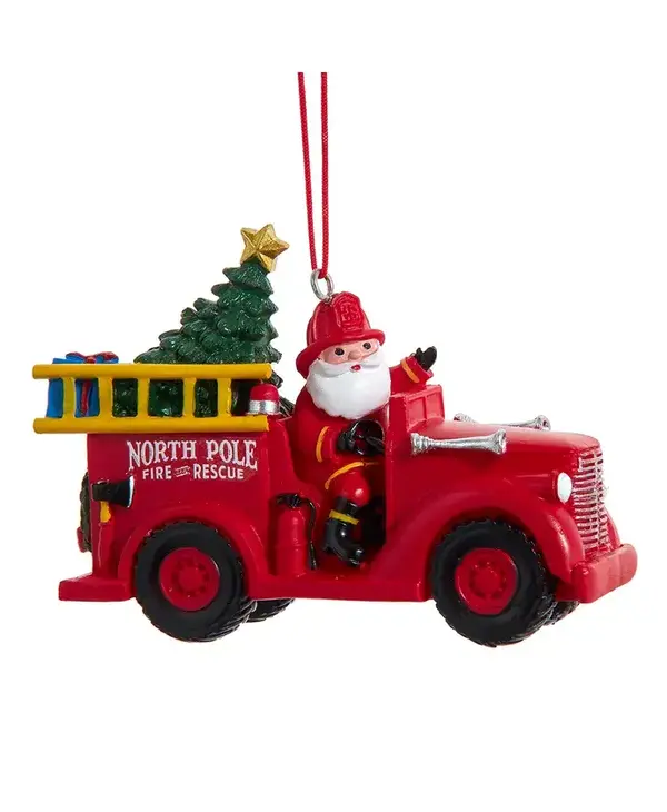 This ornament captures the essence of Christmas while paying tribute to the brave heroes who keep our communities safe. Crafted with meticulous attention to detail, this ornament features Santa Claus himself taking the driver's seat of a festive red firetruck. Dressed in his traditional red suit and hat, Santa is on a special mission to spread joy and deliver presents to all, with his trusty firetruck loaded up with gifts and a Christmas tree. This ornament is not only a festive decoration but also a heartwarming tribute to the heroic firefighters who work tirelessly to keep us safe. It serves as a reminder of the selflessness and dedication of these brave individuals, especially during the holiday season. This ornament will become a cherished part of your holiday traditions, bringing smiles and festive cheer to all who behold it. So, ring the holiday bells and let Santa drive his firetruck into your heart and home with this endearing and meaningful ornament that perfectly blends the joy of the season with gratitude for our everyday heroes.