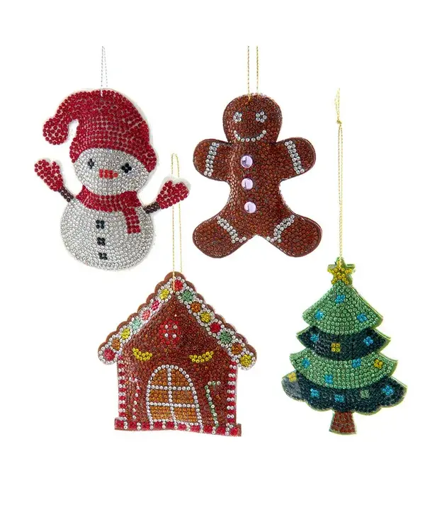 Add sparkle to your holiday décor with this festive set of rhinestone Christmas ornaments! Featuring a snowman, gingerbread man, Christmas tree, and gingerbread house, each piece is adorned with glittering rhinestones for a dazzling, eye-catching look.