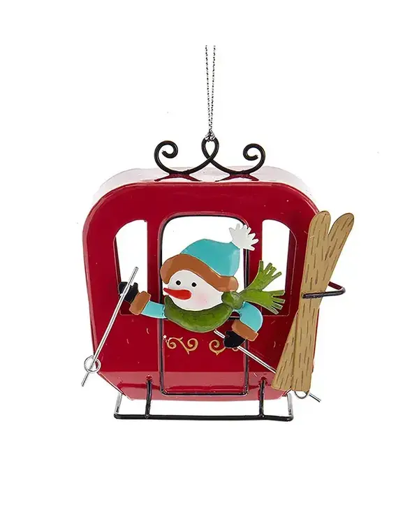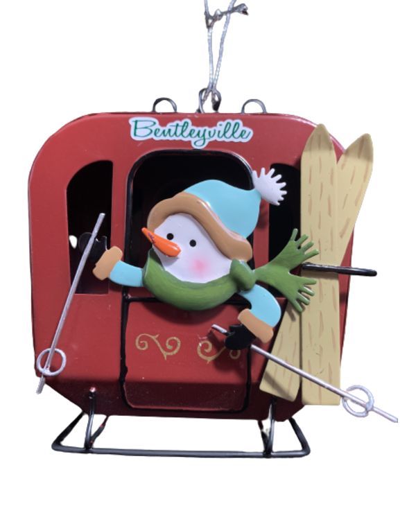 Add some winter wonder to your Christmas tree with this adorable Snowman in Ski Gondola ornament. Perfect for snow lovers and skiers alike, this charming ornament features a snowman enjoying a scenic gondola ride, bringing a playful touch to your holiday décor.