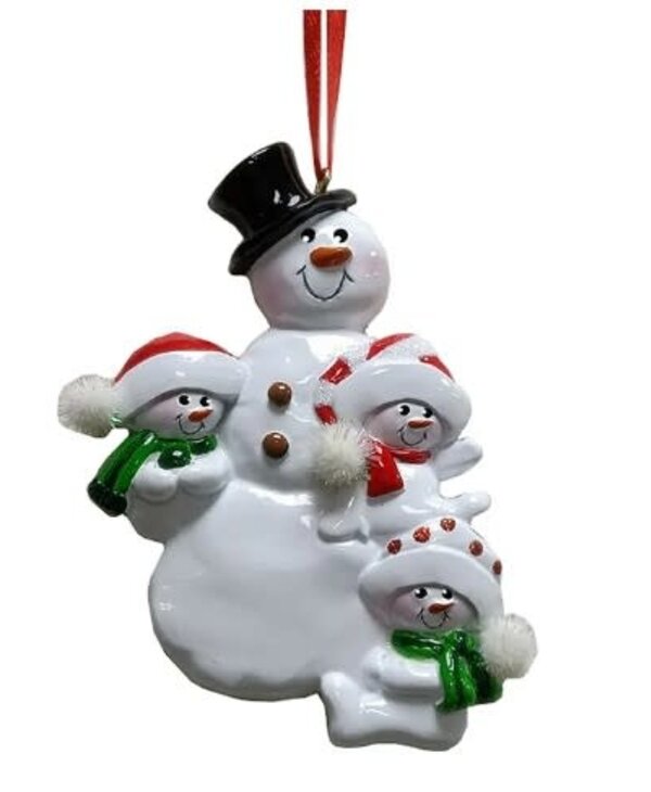 Capture the warmth and joy of the holidays with this Snowman Family of 3 Ornament. Perfect for families, this charming ornament features six adorable snowmen, each with their own personality, bundled up in scarves and hats, making it a perfect way to celebrate your loved ones this season.