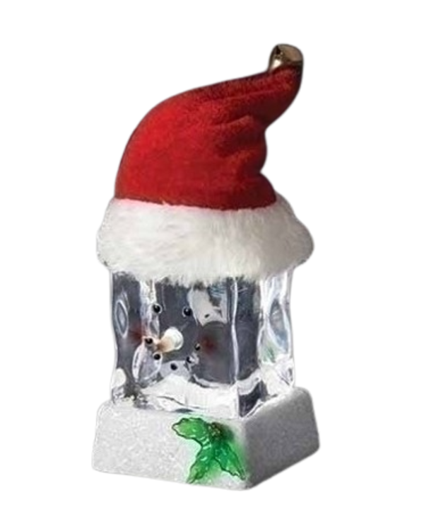 This is probably one of the cutest things you’ve ever seen! This big Ice Cube is dressed as Santa and he’s wearing a red cap. Done in clear plastic that completely lights up. He can be used as an ornament or a table decoration.