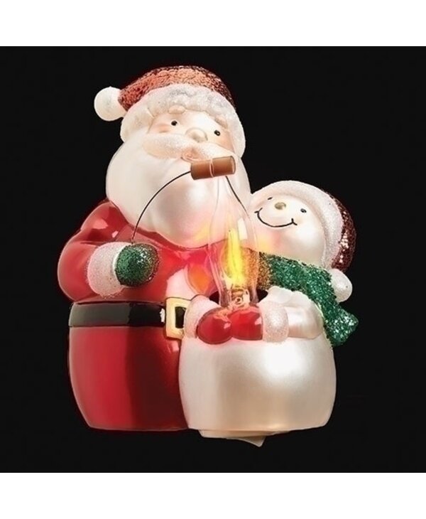Add a cozy, festive glow to your home with the 5.5" Santa & Snowman Flicker Flame Night Light. This charming night light features Santa and a snowman in a delightful holiday scene, with a flickering flame effect that mimics the warm glow of a candle. Standing at 5.5 inches tall, it’s the perfect size for brightening up any room, whether placed on a nightstand, mantel, or bedside table. The soft, flickering light adds a touch of warmth and cheer to your holiday decor, making it a perfect accent for both children and adults alike.