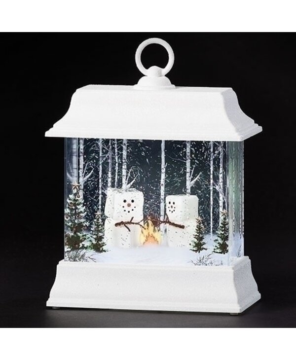 Add a cozy touch to your holiday decor with the 8.5" Lighted Swirl Lantern featuring Marshmallows by the Fire. This charming lantern design captures the warmth of a winter evening, with marshmallows roasting over a crackling fire inside. The swirl pattern and soft glow from integrated LED lights create a serene and inviting ambiance. Standing at 8.5 inches tall, this lantern makes a perfect tabletop accent or holiday decoration for any room. Whether displayed on a mantel, shelf, or as part of your seasonal setup, this lighted lantern brings a festive, homey feel to your space.