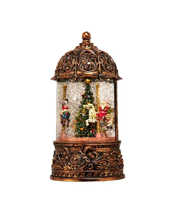 This festive water lantern features a heartwarming scene of Santa and a carousel, creating a magical ambiance that captures the spirit of the season. Measuring 8.66 inches, the lantern is compact enough to be placed on tabletops, mantels, or as a centerpiece in your holiday display. The battery-operated design adds convenience, allowing you to showcase the enchanting scene without the need for a nearby electrical outlet. The LED light within the water lantern illuminate the interior, casting a warm and festive glow on the charming Santa and carousel figures. The swirling glitter inside the water adds an extra layer of magic, creating a mesmerizing snow globe effect that captivates both children and adults alike. With its nostalgic design and modern technology, this lantern is a versatile and eye-catching addition to your holiday decor. Whether placed on its own or incorporated into a larger festive arrangement, this lantern brings a touch of holiday cheer and whimsy to your home.