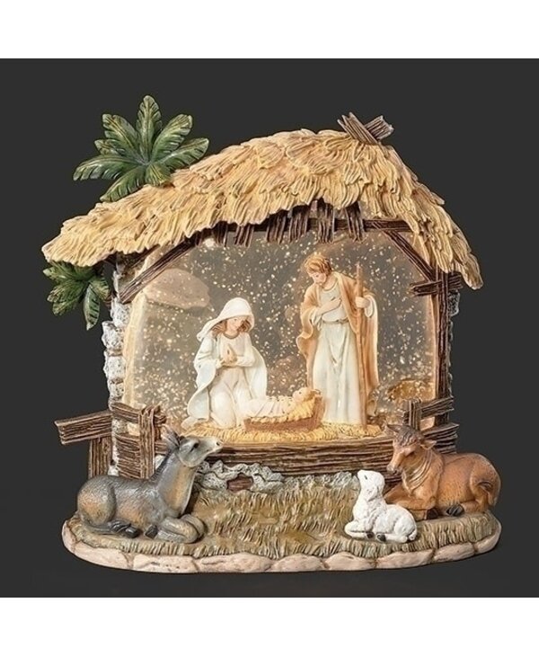 Celebrate the true spirit of Christmas with the 8" Lighted Swirl Holy Family Stable with Animals. This beautifully crafted nativity scene features a swirl design and showcases the Holy Family in a stable, complete with delicate animals like a donkey and lambs. The integrated LED lights softly illuminate the scene, bringing warmth and serenity to your holiday display. Standing at 8 inches tall, this piece is perfect for tabletops, mantels, or as a centerpiece in your home. It’s a lovely reminder of the Christmas story, adding both beauty and peace to your festive decorations.