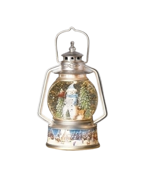 9.5"H LIGHTED SWIRL SNOWMAN IN LANTERN