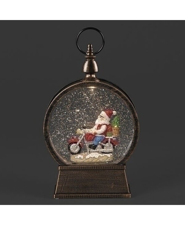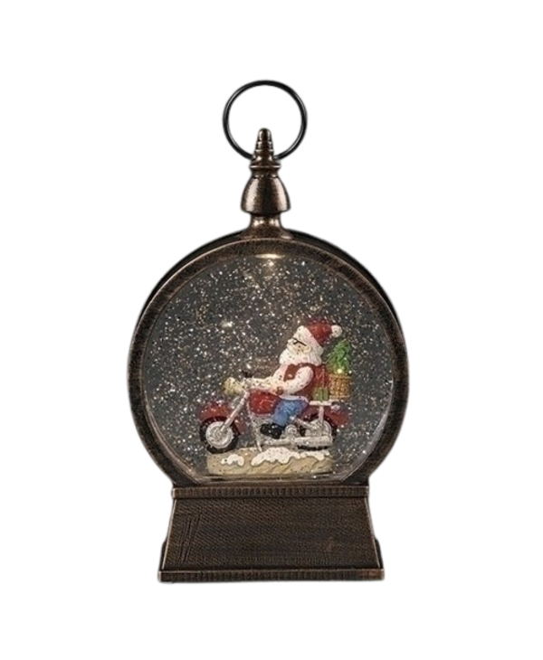 Bring some festive cheer to your home with this charming Lighted Swirl Motorcycle Santa Water Globe. Standing at 9 inches tall, this decorative piece features Santa Claus riding a motorcycle, surrounded by a snow-filled globe....Read more