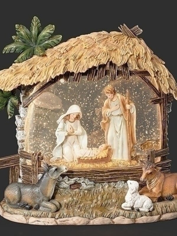 Honor the Christmas story with this elegant, lighted swirl Holy Family stable, bringing a peaceful and festive ambiance to your home.