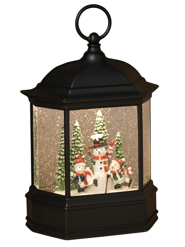 A Magical Glow of Christmas Cheer Bring the wonder of the season home with these holiday lanterns, available in two heartwarming designs. Choose from a jolly snowman family frolicking in the snow or Santa surrounded by gifts beneath festive evergreens.