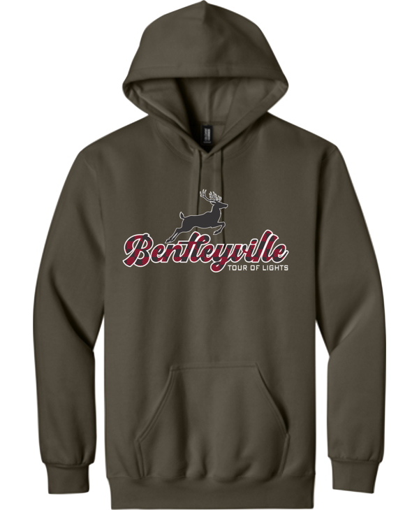 Featuring a bold plaid “Bentleyville” script and a leaping reindeer silhouette, it perfectly captures the magic of winter nights under millions of twinkling lights. Whether you’re visiting the tour or cozying up at home, this hoodie brings comfort, cheer, and a touch of Northland charm to every chilly night.