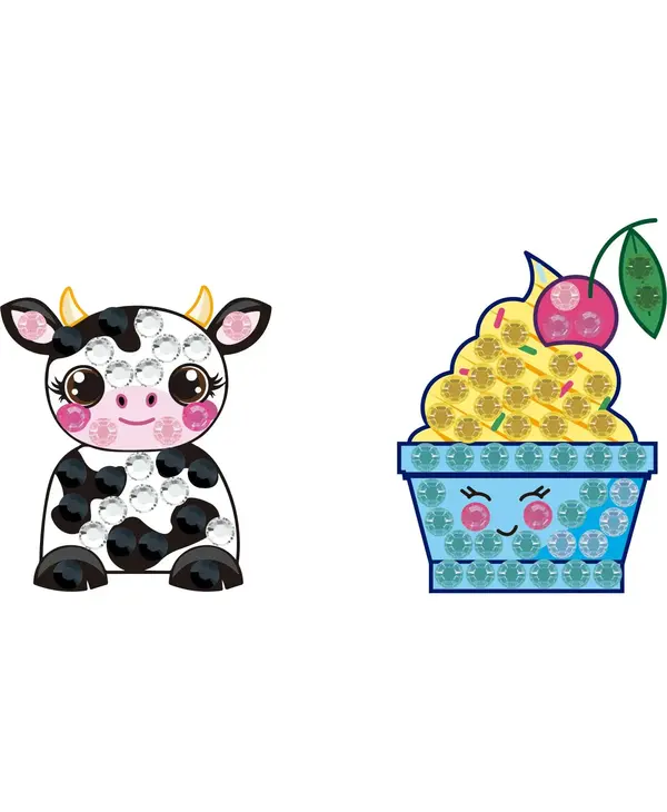 Explore the enchanting world of diamond painting for kids with the - QUICK DOTZ® - BIG DOTZ® Stickers, Pack 3, Dairy Cream. This gem art kit is designed to captivate young imaginations and inspire creativity like never before. The kit includes two color printed BIG DOTZ® stickers, providing the perfect canvas for creating dazzling jewel art pieces. With BIG DOTZ® pre-sorted by shade, the crafting process becomes a breeze, ensuring that even young artists can enjoy the experience without frustration. Crafting with this diamond painting kids kit is a delightful journey from start to finish. The set comes complete with a craft tray, stylus, wax piece, and color printed step-by-step pictorial instructions, making it easy for kids to dive into their artistic endeavors. Whether they're following the provided design or adding their own personal touches, the possibilities for creativity are endless. Not only does diamond painting offer hours of entertainment, but it also promotes concentration, fine motor skills, and a sense of accomplishment. Plus, with the Love BUZZ theme, the finished masterpieces are sure to spread joy and excitement. Let your child's creativity shine bright with the - QUICK DOTZ® - BIG DOTZ® Stickers