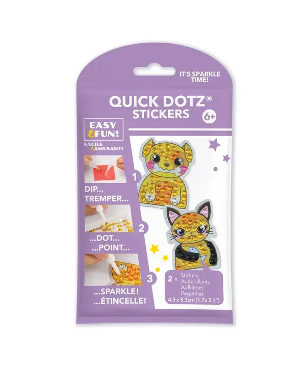 Explore the enchanting world of diamond painting for kids with the - QUICK DOTZ® - BIG DOTZ® Stickers, Pack 9, Pup & Pus Cat. This gem art kit is designed to captivate young imaginations and inspire creativity like never before. The kit includes two color printed BIG DOTZ® stickers, providing the perfect canvas for creating dazzling jewel art pieces. With BIG DOTZ® pre-sorted by shade, the crafting process becomes a breeze, ensuring that even young artists can enjoy the experience without frustration. Crafting with this diamond painting kit is a delightful journey from start to finish. The set comes complete with a craft tray, stylus, wax piece, and color printed step-by-step pictorial instructions, making it easy to dive into their artistic endeavors. Whether they're following the provided design or adding their own personal touches, the possibilities for creativity are endless. Not only does diamond painting offer hours of entertainment, but it also promotes concentration, fine motor skills, and a sense of accomplishment. Plus, with the Love BUZZ theme, the finished masterpieces are sure to spread joy and excitement. Let your creativity shine bright with the - QUICK DOTZ® - BIG DOTZ® Stickers