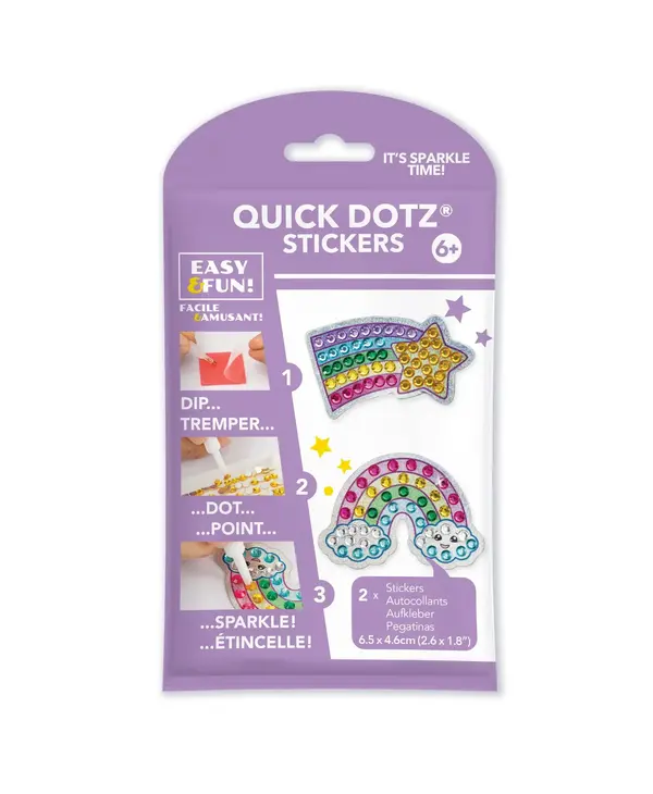 Explore the enchanting world of diamond painting for kids with the - QUICK DOTZ® - BIG DOTZ® Stickers, Pack 7, Star Rainbow. This gem art kit is designed to captivate young imaginations and inspire creativity like never before. The kit includes two color printed BIG DOTZ® stickers, providing the perfect canvas for creating dazzling jewel art pieces. With BIG DOTZ® pre-sorted by shade, the crafting process becomes a breeze, ensuring that even young artists can enjoy the experience without frustration. Crafting with this diamond painting kit is a delightful journey from start to finish. The set comes complete with a craft tray, stylus, wax piece, and color printed step-by-step pictorial instructions, making it easy to dive into their artistic endeavors. Whether they're following the provided design or adding their own personal touches, the possibilities for creativity are endless. Not only does diamond painting offer hours of entertainment, but it also promotes concentration, fine motor skills, and a sense of accomplishment. Plus, with the Love BUZZ theme, the finished masterpieces are sure to spread joy and excitement. Let your creativity shine bright with the - QUICK DOTZ® - BIG DOTZ® Stickers