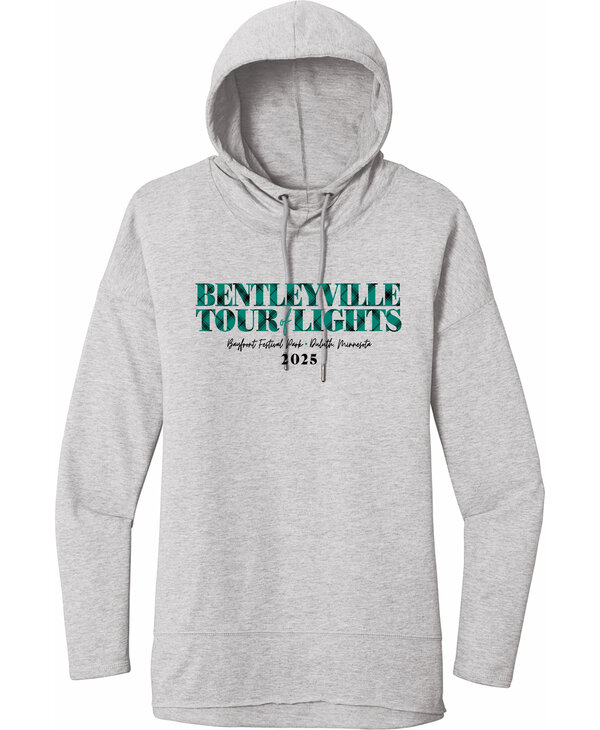 Celebrate the season in cozy, classic style with the Bentleyville Tour of Lights 2025 hoodie! This soft heather gray pullover features bold teal plaid lettering that captures the festive glow of Duluth’s Bayfront Festival Park....Read more