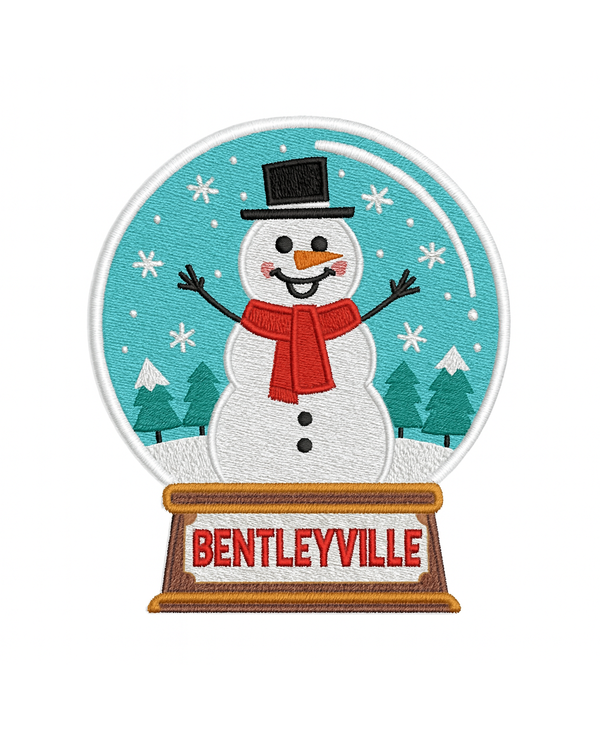 Shake up the season with this whimsical Bentleyville snow globe patch, featuring a happy snowman surrounded by frosted trees and swirling snow—a timeless symbol of winter wonder....Read more
