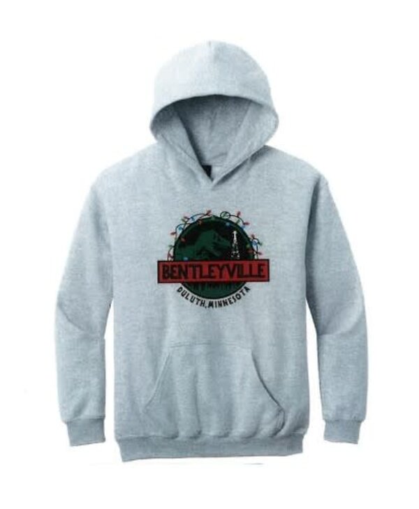Add a roar to your holiday wardrobe with this fun and festive Bentleyville hoodie! Featuring a holiday T-Rex wrapped in colorful string lights, this design brings a playful twist to the Tour of Lights magic....Read more