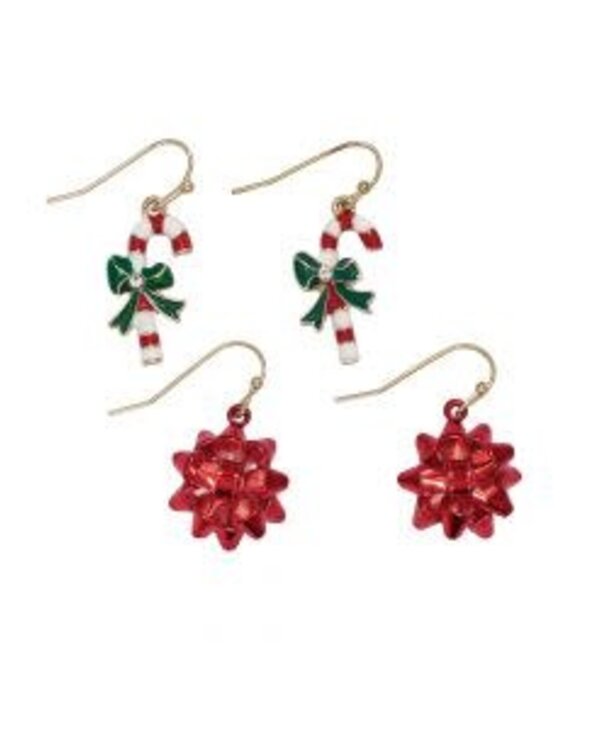 Festive Holiday Bow & Candy Cane Earrings – Set of 2