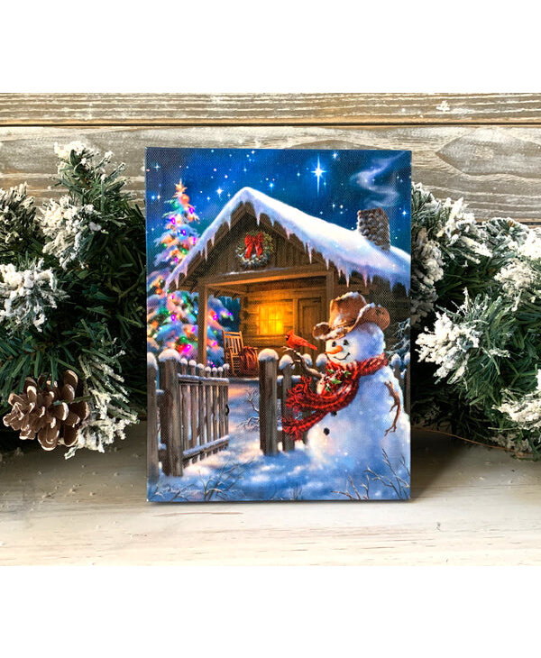 "Christmas Cabin" Lighted Mini Tabletop Canvas 8"x6" with 6 hour timer.