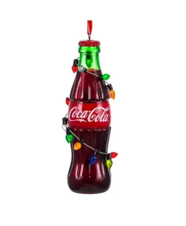 Add a refreshing twist to your holiday décor with this Coca-Cola Bottle Ornament, wrapped in festive multicolored Christmas lights. This officially licensed ornament captures the classic glass Coke bottle design with a realistic red label and a green-tinted top, making it a must-have for collectors and Coca-Cola fans alike.