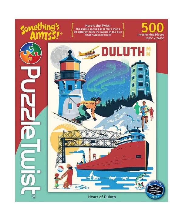 With influences from vintage travel posters, his artwork highlights iconic scenes like the Aerial Lift Bridge, Fitger’s Brewery, and Grandma’s Marathon. As always, Steve adds a few fun twists to keep puzzlers on their toes while showcasing the spirit of the Zenith City.