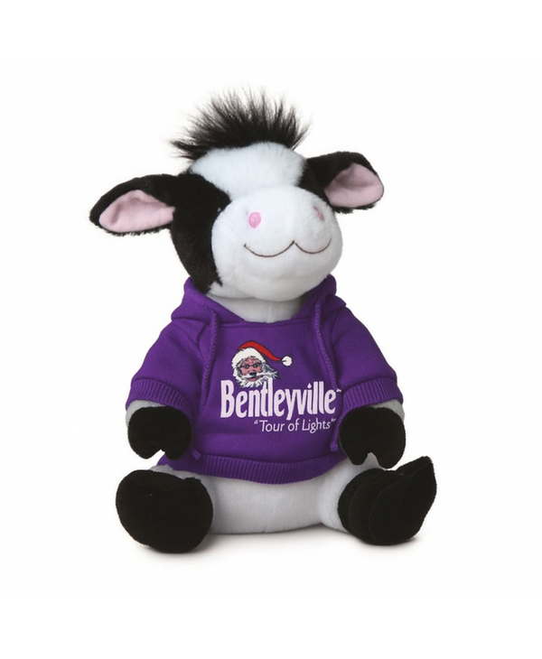 Soft, silly, and full of charm, this plush cow rocks a Bentleyville hoodie while waiting for cuddles. Hoodie color is picked randomly, making every cow a surprise delight!