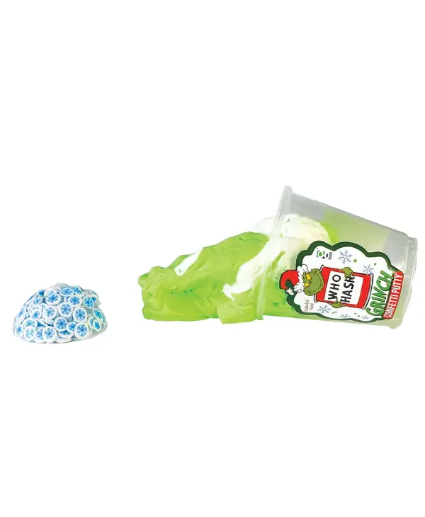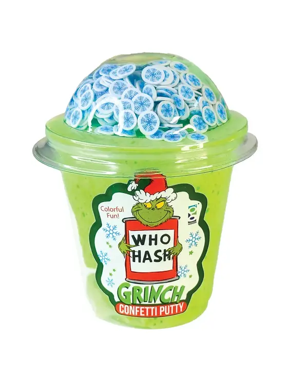 Unleash holiday hijinks with the Who-Hash Grinch Confetti Putty! This festive green slime oozes with Grinchy fun and sparkly confetti, inspired by the classic Dr. Seuss tale. Packed in a cheerful cup topped with blue snowflake-shaped polymer pieces, it’s perfect for squishing, stretching, and satisfying sensory play. The bright green putty swirls with creamy white for a wintery twist, while the “Who-Hash” label gives it that signature Seussian snark. Great as a stocking stuffer, party favor, or boredom buster, this putty brings holiday cheer—with a side of mischief!