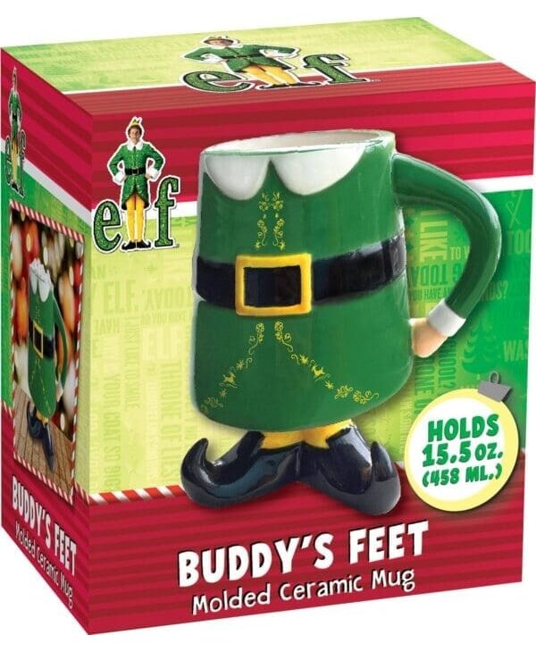 You can't get much cuter than our 18.5 oz ceramic molded Buddy Feet mug direct from the classic Christmas movie, Elf. It's a perfect way to start your day, end it or for that matter, just enjoy it, day or night! Great for yourself or as white elephant or Holiday gifts. Kids and adults will love this fun molded mug