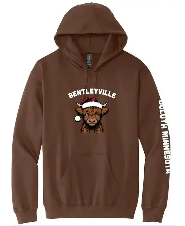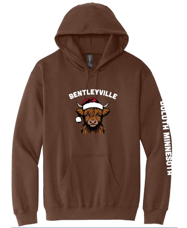 “BENTLEYVILLE” arches proudly above the design, while “DULUTH MINNESOTA” runs down the sleeve — a perfect nod to your favorite Northland celebration. Made for chilly nights under twinkling lights, this soft, durable hoodie keeps you snug as you stroll Bayfront or sip cocoa by the fire.