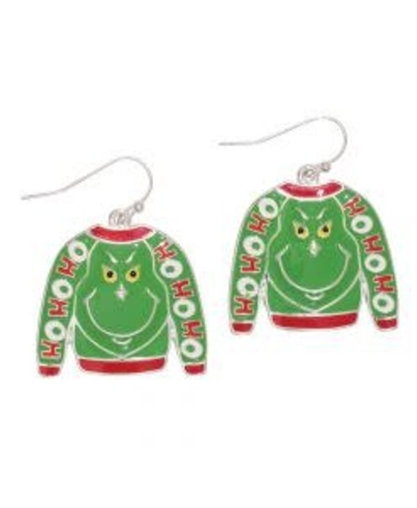 These Grinch ugly sweater earrings feature a festive green sweater with the Grinch’s smirking face and "Ho Ho Ho" text, bringing a fun and lighthearted vibe to your Christmas wardrobe....Read more