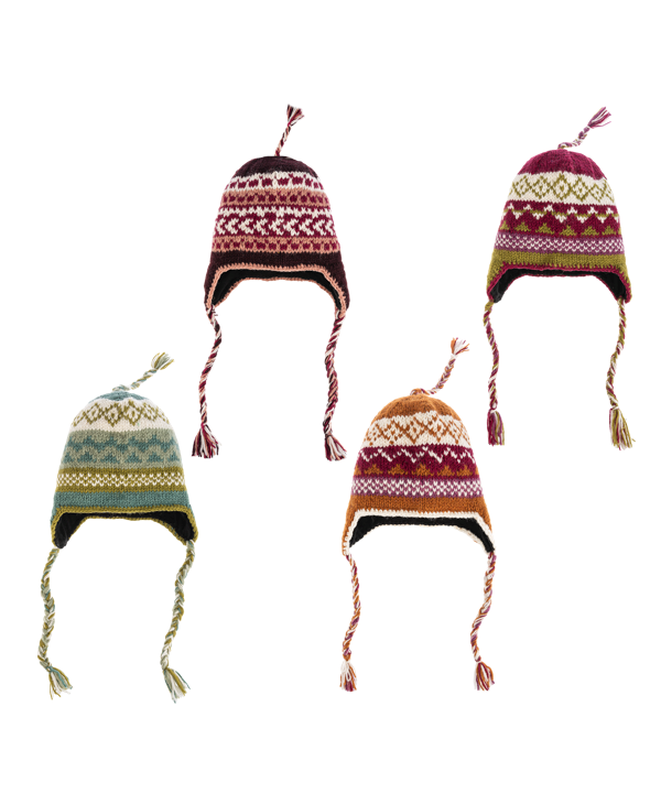 Wrap your winter in tradition with these 100% wool earflap hats, lovingly handmade in Nepal. Each one features vibrant Fair Isle patterns, playful tassels, and cozy flaps to keep you snug on chilly days. With rich, earthy tones and bold color combos, these hats aren’t just warm—they’re a statement! Fully lined for extra comfort, they’re the perfect blend of style, heritage, and handcrafted charm.