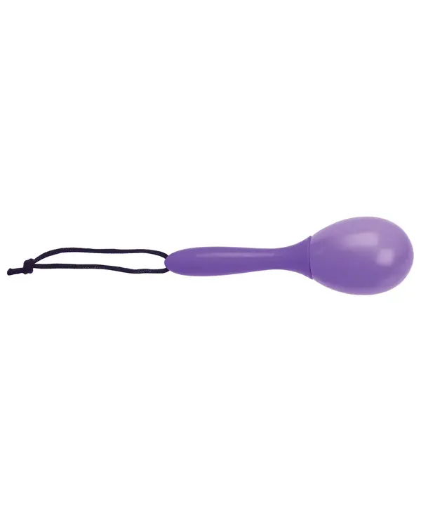 These 5-inch-long maracas fit easily in small hands, and a lanyard string makes it easy to loop them around wrists for security. Available in 4 vibrant colors, including purple, blue, pink, and green. Uniquely designed for easy, secure grabbing and shaking. These non-toxic, plastic maracas clean easily when dirty.