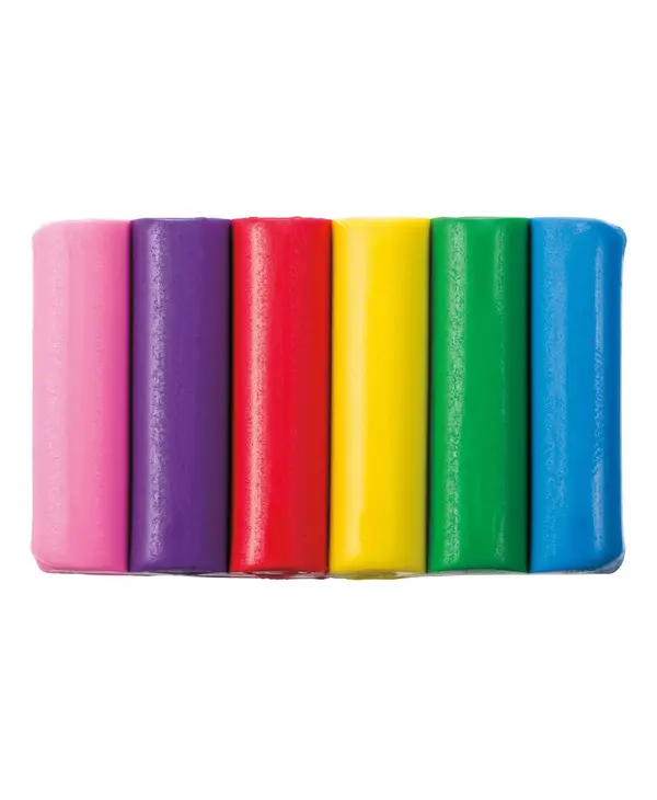 Colors include blue, green, yellow, red, purple, and pink. This clay material is also unique in that it won’t harden. Kids can play with each clay color for hours, and it won’t dry out or break. A durable, stretchy clay material that’s soft and fun to form and shape and that will provide engaging play again and again.