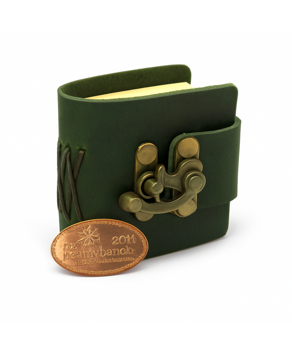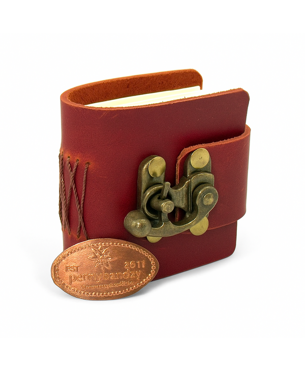 Made from genuine leather with a rich, earthy finish, this pocket-sized notebook features an antique brass clasp and stitched detailing for a touch of vintage charm.
