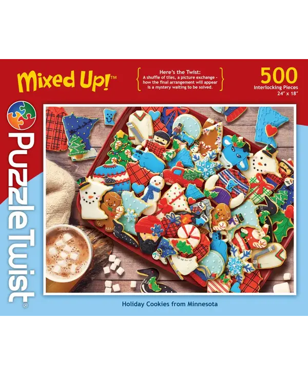 Indulge in a sweet holiday tradition with Holiday Cookies from Minnesota, a delightful 500-piece jigsaw puzzle from PuzzleTwist! Featuring a festive spread of classic Minnesota holiday cookies, this puzzle brings the warmth and nostalgia of holiday baking to life. But just like a good recipe has a surprise ingredient, this puzzle has a twist—some elements won’t match the box image, adding an extra layer of fun and challenge!