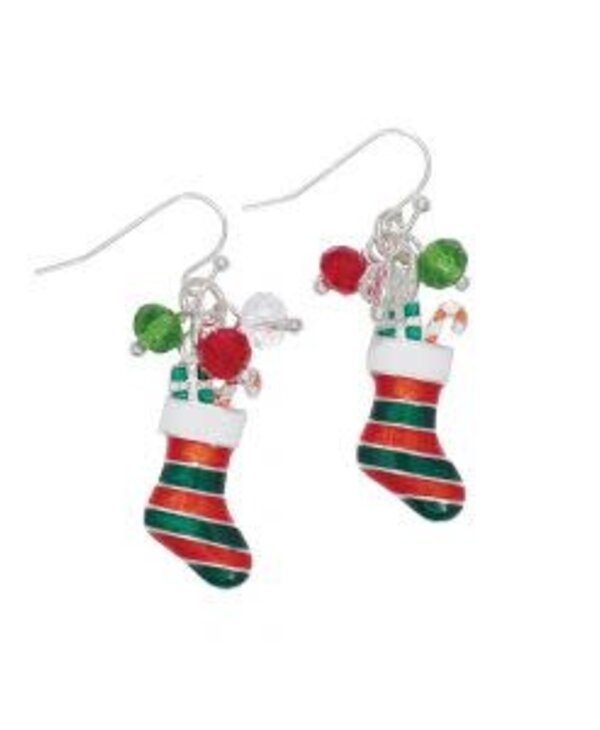 Get into the holiday spirit with these charming Christmas stocking earrings! Featuring colorful enamel stockings filled with festive details like candy canes and tiny presents, these earrings are accented with red, green, and clear beads for extra sparkle and cheer. Perfect for holiday parties, gift exchanges, or adding a fun touch to your winter wardrobe!