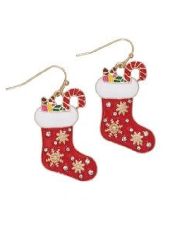 Celebrate the holiday season in style with these adorable Christmas stocking dangle earrings! Featuring a classic red stocking filled with gifts and a candy cane, these earrings are perfect for spreading Christmas cheer.