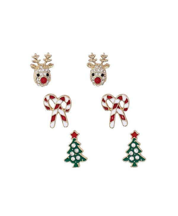 This festive Christmas-themed stud earring set includes three adorable pairs, perfect for the holiday season. The set features: