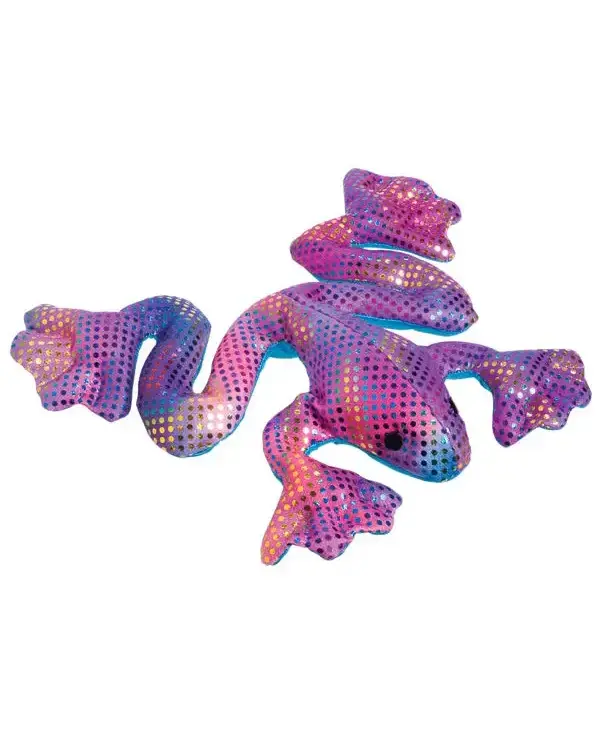 Each comes in a variety of multi-colored options with black beaded eyes and a lustrous shimmering fabric covering. Sand Animals Reptiles measure 6 to 12inches long.