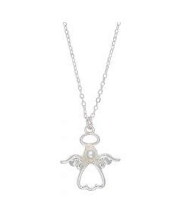 Carry a symbol of love, protection, and serenity with this delicate silver angel pendant necklace. Featuring an open-heart design with gracefully outstretched wings, this beautifully crafted pendant is accented with a luminous pearl at its center, adding a touch of elegance and charm. The angel's halo completes the celestial look, making it a meaningful piece for any occasion.