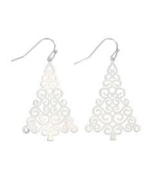 Embrace the holiday spirit with these charming Christmas tree dangle earrings! Crafted from silver-tone metal, these lightweight earrings feature an intricate swirl-cut design that adds a touch of elegance and whimsy to your festive wardrobe. Whether you're dressing up for a holiday party or looking for a fun yet sophisticated accessory, these earrings are the perfect seasonal statement piece.