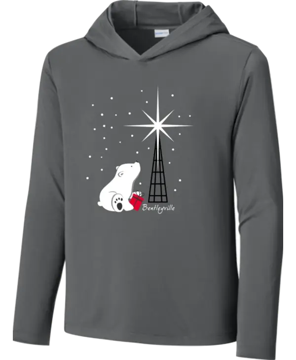 Lightweight comfort meets holiday magic in this Bentleyville PRO UV performance hoodie! Featuring an adorable polar bear gazing up at the iconic Bentleyville tree beneath a glowing star, this design captures the wonder of winter nights at Bayfront Park....Read more