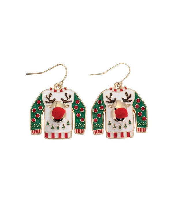 Spread some holiday cheer with these adorable Sweaters with Rudolph Earrings . Featuring the lovable red-nosed Rudolph on the sweater, these earrings are a whimsical addition to your holiday accessories. The intricate design captures the festive charm of the season, making them a perfect choice for anyone looking to add a playful touch to their outfit.