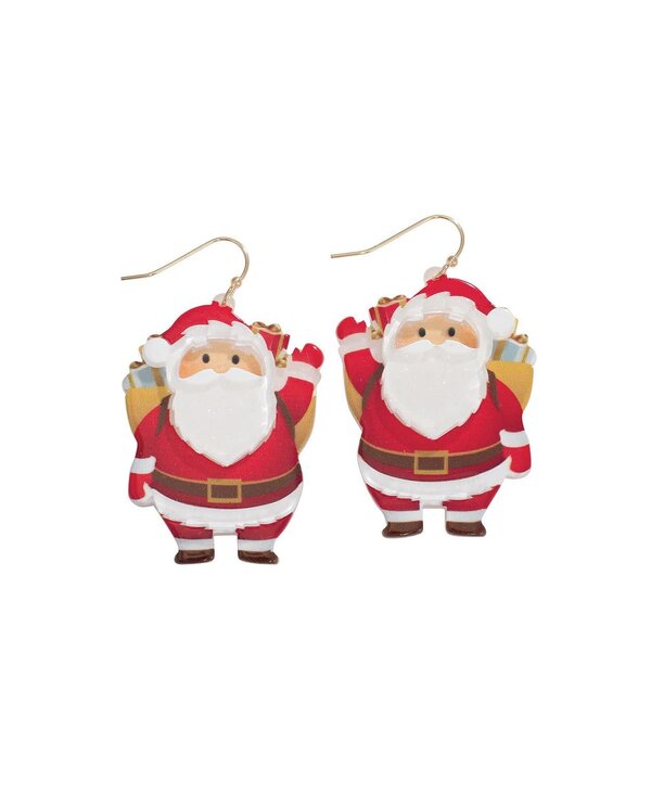 These festive earrings feature a delightful, jolly Santa Claus giving a cheerful wave, complete with his iconic red suit, fluffy white beard, and bright, twinkling eyes. The design captures the joyful essence of the season, making them the perfect accessory for adding a playful, spirited touch to any holiday outfit.