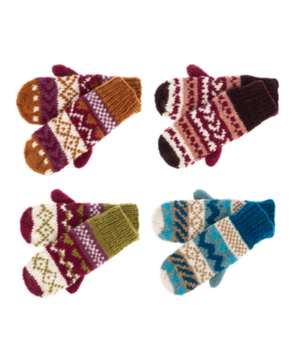 These 100% wool mittens are handmade in Nepal and bursting with warmth, charm, and color! Each pair features vibrant Fair Isle patterns, thick knit texture, and soft fleece lining for extra coziness. Whether you're building snowmen or sipping cocoa, these mittens are your cold-weather must-have—stylish, snug, and full of personality!