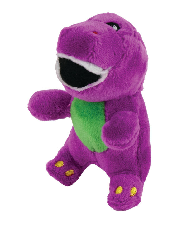 - Perfectly pint-sized and oh-so-huggable, this adorable mini Barney plush is the ideal travel buddy or desk companion.